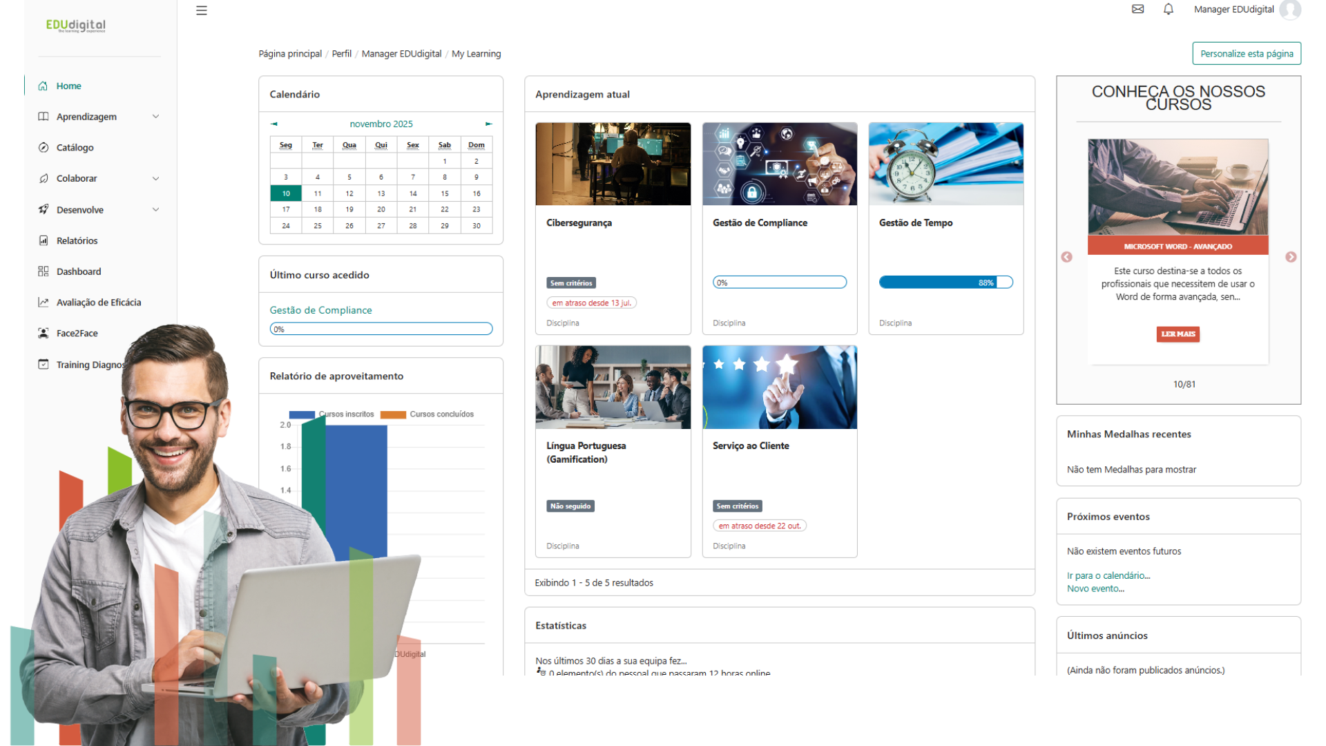 Nós entendemos que a formação faz cada vez mais parte da sua organização. E que você precisa de um parceiro que vá para além da tecnologia e da IA e lhe ofereça uma experiência de aprendizagem que envolva as suas pessoas, permita a aquisição de novas competências e tenha um impacto que se possa medir.
